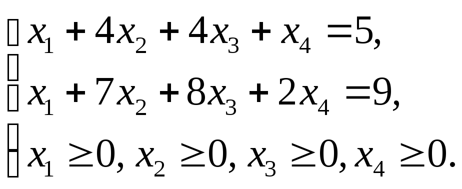 Решение задачи линейного программирования с двумя основными переменными приведено в симплекс таблице: