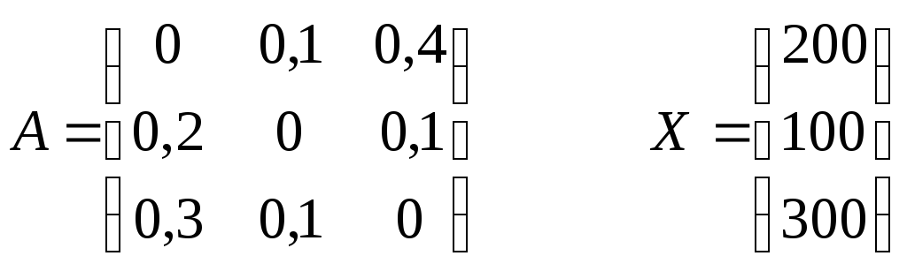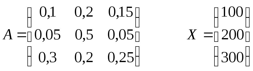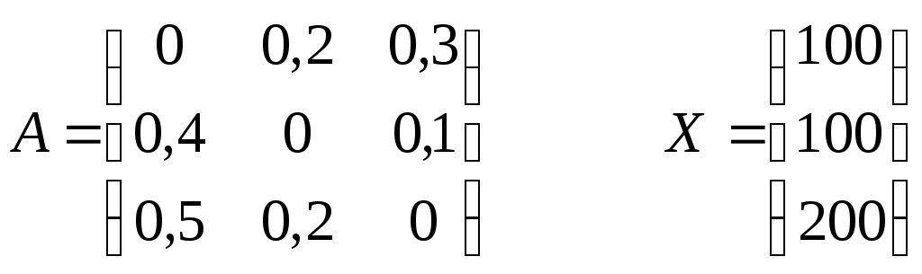 По матрице прямых затрат А и вектору валового продукта Х трех взаимосвязанных отраслей экономической системы рассчитайте конечное потребление Y каждой отрасли: |