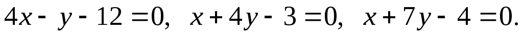 В(-4;-1), С(-4;-7). Уравнения АВ, ВС, АС - сторон