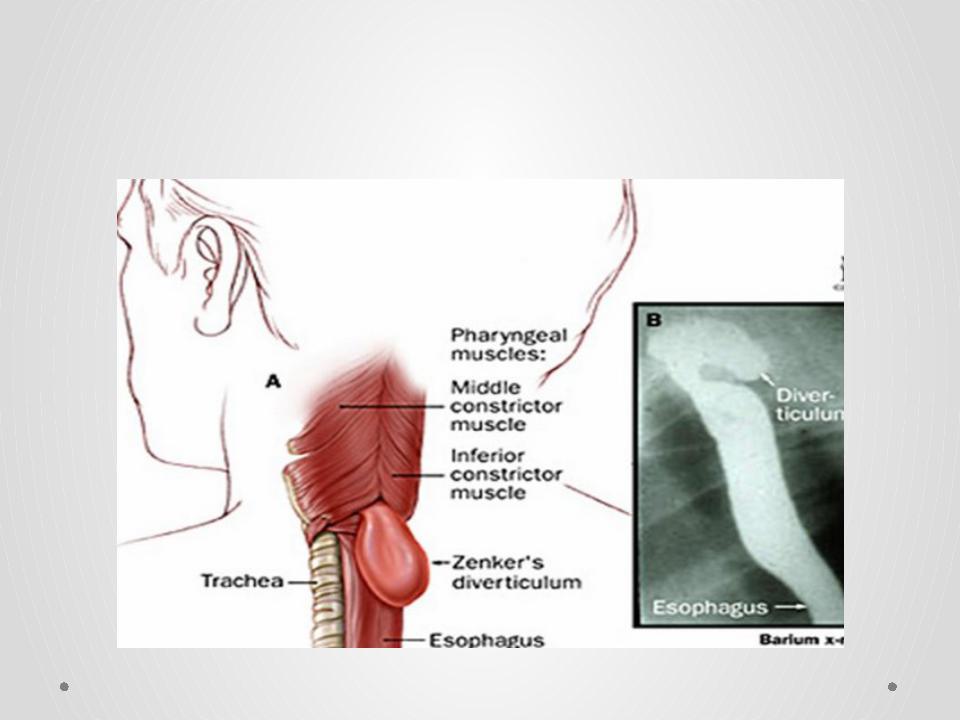 •Дивертикулы представляют собой ограниченное выпячивание стенок пищевода.