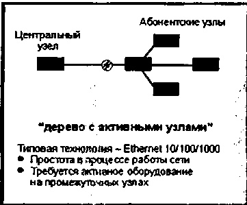 Ethernet қатынау желісі өте қиын таратылған бұтақты сәулетімен ерекшелінеді. Бірақ, әр бұтақтың түйініне сәйкес бір активті құрылғы орнатылып (коммутатор, маршрутизатор), ал осы активті құрылғылардың порттары бір-бірімен тек жұпты «нүкте-нүкте» топологиясы арқылы қатынайды. Резервті арналар (олар да «нүкте-нүкте») екі жеке порттарды қолдану арқылы жасалынады.