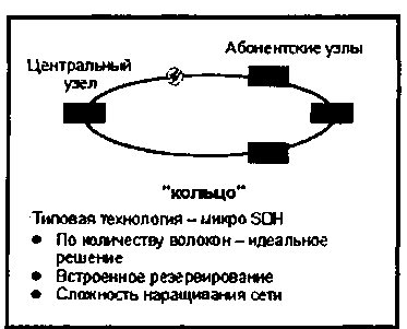 Бұл суретте қатынау желілерінің әртүрлі топологияларын қарастырғанда негізгі үш сәулетті көрсетуге болады: «сақиналы», «нүкте-нүкте», «нүкте-көп нүкте»; Қатынау желілерінде сақиналы топологиясын (Micro SDH және басқалар) қолданғанда оның тиімді жұмысы үшін барлық сақина түйіндері қосылып, жұмыс істеу керек. Бірақ, тәжірибе жүзінде мұндай желі құрылысында тұтынушыларды қосу бір уақытта болмайды. Сол кездің өзінде, сақиналық желіні аз санды абоненттер үшін түгел салып қосқанда, ол жоғары бастапқы шығындарға әкеледі. Тапсырушы қызмет көрсету келісім-шартына қол қоймайынша, абоненттік оптикалық түйінді салу рационалсыз. Сондықтан, шын өмірде қатынау желілерінің сақиналық топологияларының көбісі не өте жинақы ("collapsed rings"), не бір кабель бойымен созылыңқы келеді.