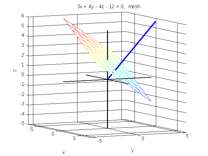 title('3x + 4y - 4z - 12 = 0, mesh')
