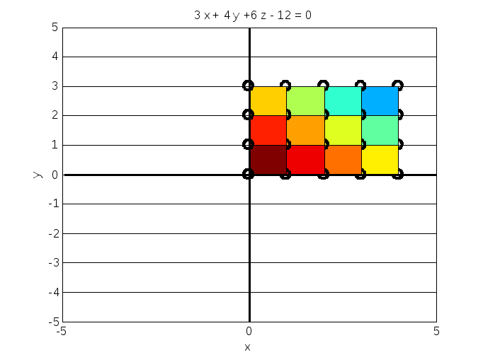 Построить плоскость, заданную общим уравнением 3 x+ 4y+ 6z– 12 = 0.
