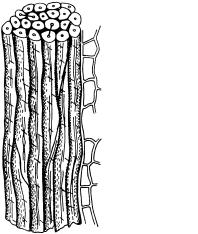исильно утолщены: диаметр внутренней полости может быть меньше диаметра утолщенной оболочки. Поры в них простые, щелевидные