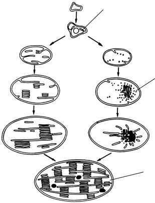 Рис. 12. Схема развития хлоропласта из пропластид: