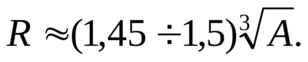 4. Радиус ядра. Радиус ядера вычисляют по приближенной формуле:
