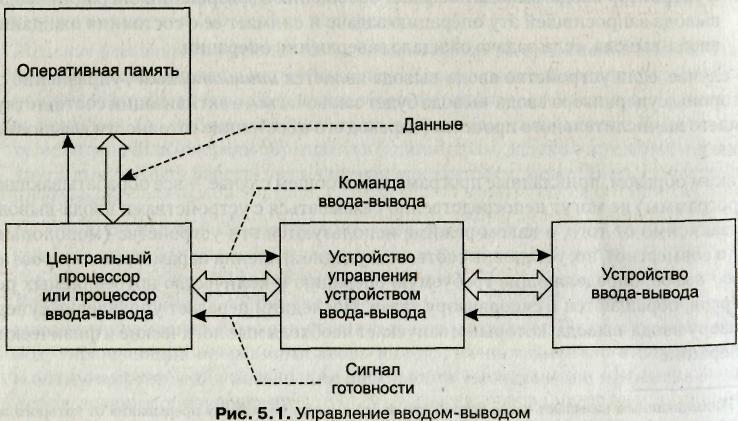 Центральный процессор посылает команду устройству управления, требующую, чтобы устройство ввода-вывода выполнило некоторое действие. Например, если мы управляем дисководом, то это может быть команда на включение двигателя или команда, связанная с позиционированием магнитных головок. Устройство управления исполняет команду, транслируя сигналы, понятные ему и центральному устройству, в сигналы, понятные устройству ввода-вывода. После выполнения команды устройство ввода-вывода (или его устройство управления) выдает сигнал готовности, который сообщает процессору о том, что можно выдать новую команду для продолжения обмена данными. Однако поскольку быстродействие устройства ввода-вывода намного меньше быстродействия центрального процессора (порой на несколько порядков), то сигнал готовности приходится очень долго ожидать, постоянно опрашивая соответствующую линию интерфейса на наличие или отсутствие нужного сигнала. Посылать новую команду, не дождавшись сигнала готовности, сообщающего об исполнении предыдущей команды, бессмысленно. В режиме опроса готовности драйвер, управляющий процессом обмена данными с внешним устройством, как раз и выполняет в цикле команду «проверить наличие сигнала готовности». До тех пор пока сигнал готовности не появится, драйвер ничего другого не делает. При этом, естественно, нерационально используется время центрального процессора. Гораздо выгоднее, выдав команду ввода-вывода, на время забыть об устройстве ввода-вывода и перейти на выполнение другой программы. А появление сигнала готовности трактовать как запрос на прерывание от устройства ввода-вывода. Именно эти сигналы готовности и являются сигналами запроса на прерывание.