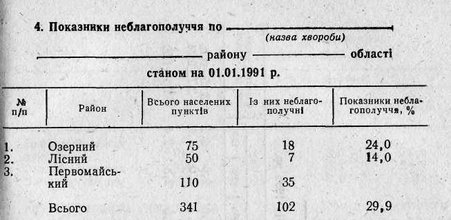 Розподіл кількості неблагополучних пунктів по роках і адміністративно-територіальних одиницях проводять складанням аналітичної таблиці (табл. 3).