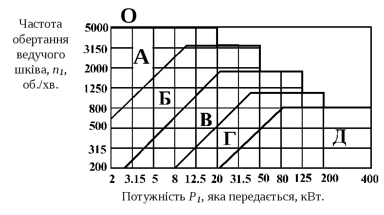 - частота обертання ведучого шківа n1=1445 об./хв.;