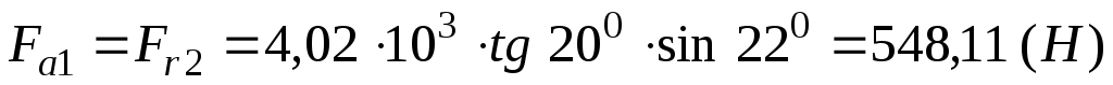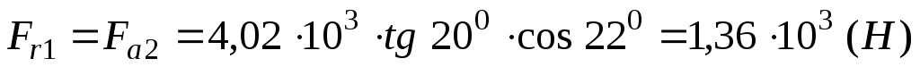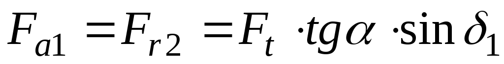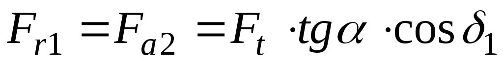 Радіальна сила на шестірні дорівнює осьовій силі на колесі: