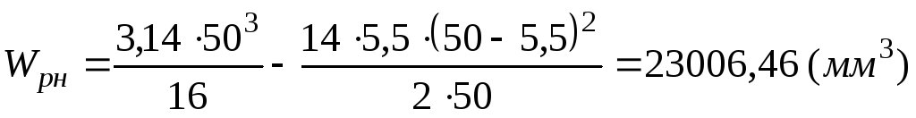 Для вала при d = 50 мм, шпонка b = 14 мм, h = 9 мм, l = 36 мм, t1 = 5,5 мм.