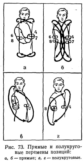 На рис. 74 показано сочетание перемены прямых и полукруговых позиций, применяемых в практике.
