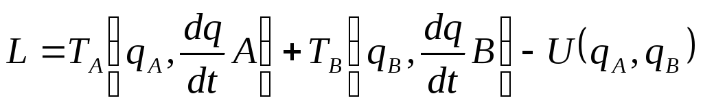 де перші два члени є кінетичними енергіями систем А і В, а третій член – їх спільну потенціальну енергію.