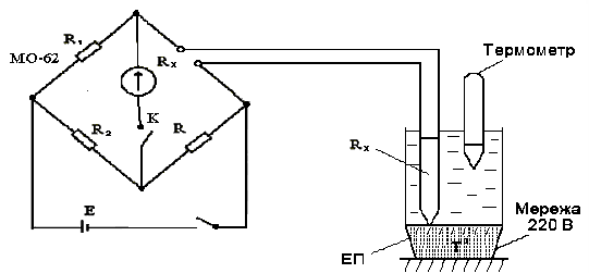 4.2. Зібрати схему рис.15.1. Термометр опору підключити до затискачів мосту.
