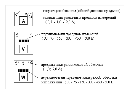 Примечание. Для ваттметра предел измерения вычисляется как произведение выбранных пределов измерения ваттметра по току и по напряжению