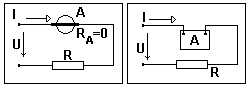Амперметр (А) служит для измерения силы тока I [A].Обладает очень малым электрическим сопротивлением (RA » 0) и включается в электрическую цепь ПОСЛЕДОВАТЕЛЬНО (рис. 1).