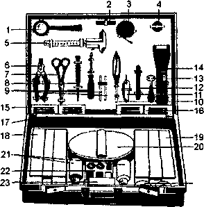 Розповсюдженим у практичній діяльності органів прокуратури є універсальний переносний криміналістичний комплект слідчого (рис. 1), який за своєю структурою складається з семи розділів: