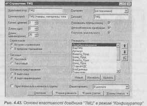 В довіднику "ТМЦ", який знаходиться в режимі "Конфигуротор" (рис. 4.43) найважливішими його характеристиками, які налагоджуються в "Конфигураторе", є наступні:
