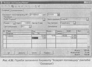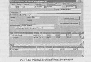 Документ "Счет входящий" призначений для відображення акцепту рахунку постачальника (рис. 4.49).