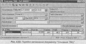 Ці дії нічим не відрізняються від виконуваних при ручному веденні обліку, якщо не вважати, звичайно, можливості автоматичного заповнення списку товарів, що числяться в заданому розрізі Склад-МВО.