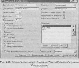 Аналогічним чином в режимі "Копфигуратор" можна налагодити довідник "МестаХранения" (рис. 4.45).