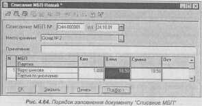 В іншому випадку відбувається списання обраних МШП зі складу по видаткових ордерах.