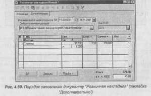 замовчуванню заповниться загальною сумою накладної з ПДВ). Сума до закриття підзвіту не може бути більшою за загальну суму даної накладної. Крім того опція "Через подотчетное лицо" є недоступною при валютному оприбуткуванні, а також при вибраному виді торгівлі "За наличньїе". В закладці "Дополпительньїе" також вказується стаття валових витрат для податкового обліку.