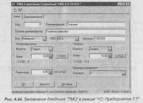 В режимі "1С: Предприятие 7.7" довідник "ТМЦ" має наступний вигляд (рис. 4.44).
