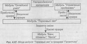 Взаємодія модулю "Торговий зал" з іншими модулями програми "Галактика" наведено на рис. 4.97.