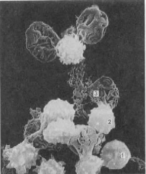 Рис. электронная микрофотография гемолиза эритроцитов и образование их “теней” (оболочки).