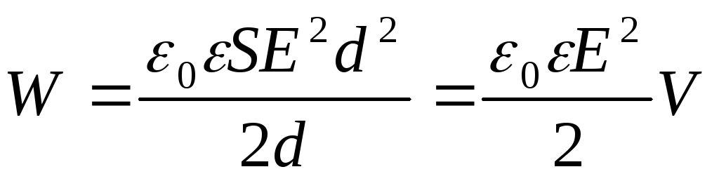 Выразим энергию конденсатора через напряженность поля, используя формулы:
