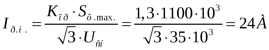 Расчет максимальных рабочих токов основных присоединений подстанций: