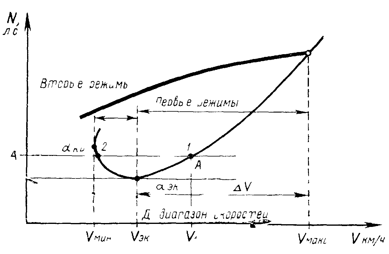 Рис. 6 Первые и вторые режимы и диапазоны скоростей горизонтального полета