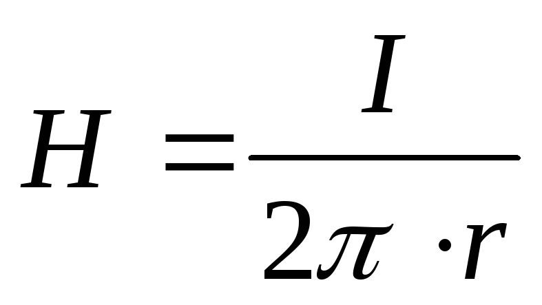 Напряженность магнитного поля на расстоянии r от оси проводника определяется по формуле: