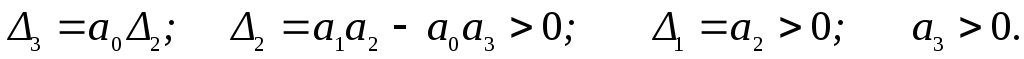 - •Таким образом, кроме положительности коэффициентов а30; а20; а10; а00