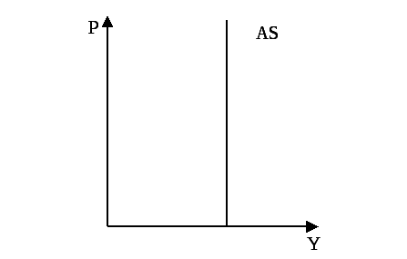 Специфика классической модели состоит в том, что кривая совокупного предложения полагается абсолютно неэластичной (вертикальной) (Рис.2.1). Совокупное предложение (AS)– это уровень фактического, реального объема производства, который может быть произведен при каждом возможном уровне цен за определенный период времени. Совокупное предложение товаров в экономике не зависит от уровня цен, определено условиями функционирования рынка труда, который обеспечивает уровень национального производства при полной занятости (при естественном уровне безработицы). Изменения совокупного спроса приводят к изменению уровня цен на товарном рынке, но не могут повлиять на реальные объемы производства товаров.