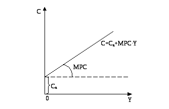 Функция потребления показывает планируемый или желаемый уровень потребительских расходов для каждого определенного уровня личного располагаемого дохода. При этом Кейнс в результате анализа потребления выводит основной психологический закон: “… люди склонны, как правило, увеличивать свое потребление с ростом дохода, но в меньшей степени, чем увеличение дохода… ”