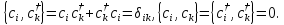 Для фермионных операторов рождения и уничтожения выполняются коммутационные соотношения: