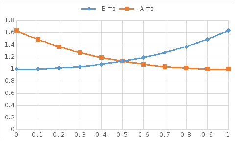 Рис. 7. График концентрационной зависимости коэффициента активности компонентов твердого раствора
