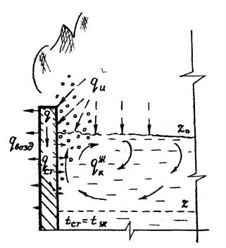 Стенки резервуара и прилегающая к ним жидкость во время горения нагреваются. Если температура стенки выше температуры кипения жидкости, жидкость закипает. Кипение усиливает конвекцию жидкости и, естественно, передачу теплоты в ее глубину. В приповерхностной области жидкости образуется гомотермальный слой. От нижней его границы стенка