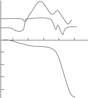 Прибор на одной небольшой навеске вещества одновременно регистрирует (рис. 11.2) изменение температуры образца (Т) и нескольких параметров, как функцию температуры нагрева: потерю массы (ТG), скорость потери массы (DТG) и тепловые эффекты протекающих процессов и реакций (DТА). Образец вещества нагревается с постоянной скоростью, которую можно варьировать в пределах от нескольких до десятков градусов в минуту. Анализ можно проводить в инертной среде азота, аргона, гелия, а также в присутствии воздуха или чистого кислорода в режиме окисления или горения.
