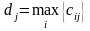 Новая матрица С* формируется по следующему правилу: каждый элемент с*ij матрицы С* равен разности между максимальным элементом dj данного столбца исходной матрицы и соответствующим элементом cij:
