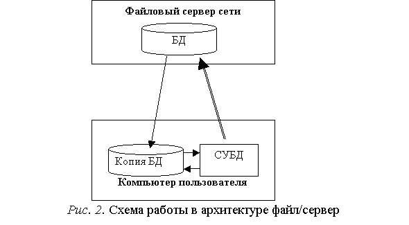 Рассмотрим организацию архитектуры файл/сервер с использованием настольной СУБД.