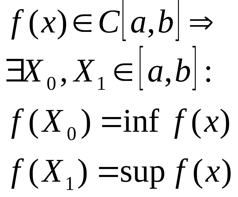 Если функция f(x)- непрерывна на отрезке a,b, то она достигает на этом отрезке своей точкой верхней и нижней границы.