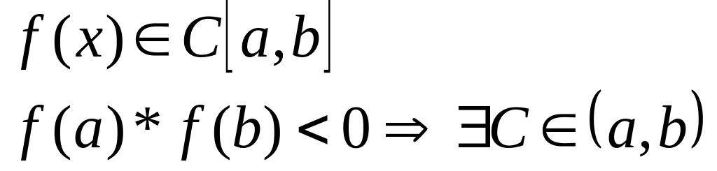 Пусть функция f(x) непрерывна на отрезке ab и на концах отрезка принимает значения разных знаков.