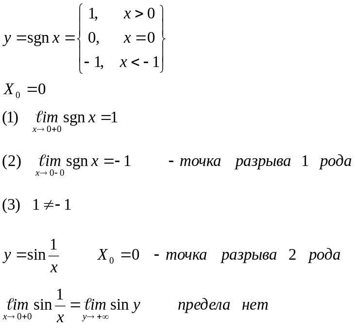 Если же в точке Х0 не выполняется какое-то из первых двух условий, то она называется точкой разрыва 2-го рода (точкой неустранимого разрыва).