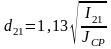 Рис. 7. Зависимость диаметра провода обмоток от тока I и средней плотности тока Jcp