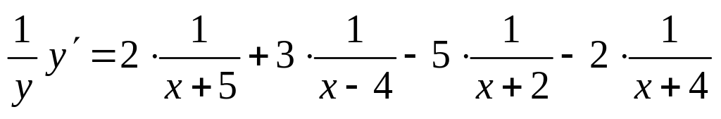 Спочатку прологарифмуємо за основою е обидві частини рівності, а потім диференціюємо: