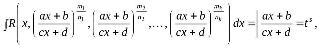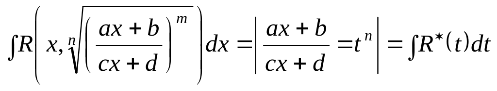 Розглянемо підстановки для інтегрування деяких типів ірраціональних функцій, при цьому символ R(x; y) означає раціональну залежність від змінних х та у.